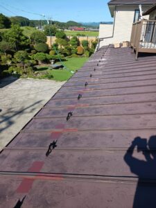 栗原市作業場屋根雪止め金具部分板金交換工事